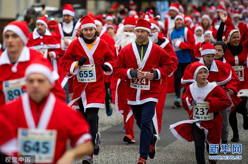 多国民众参加圣诞老人慈善赛跑 “圣诞老人”穿红衣扎堆上马路