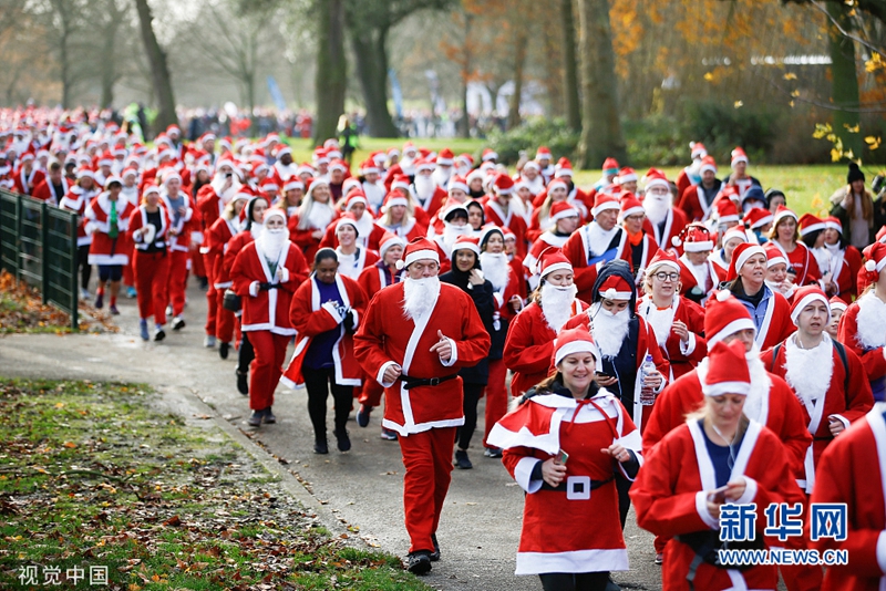 当地时间12月8日,英国伦敦,当地举办圣诞老人慈善跑。(图片来源:视觉中国)