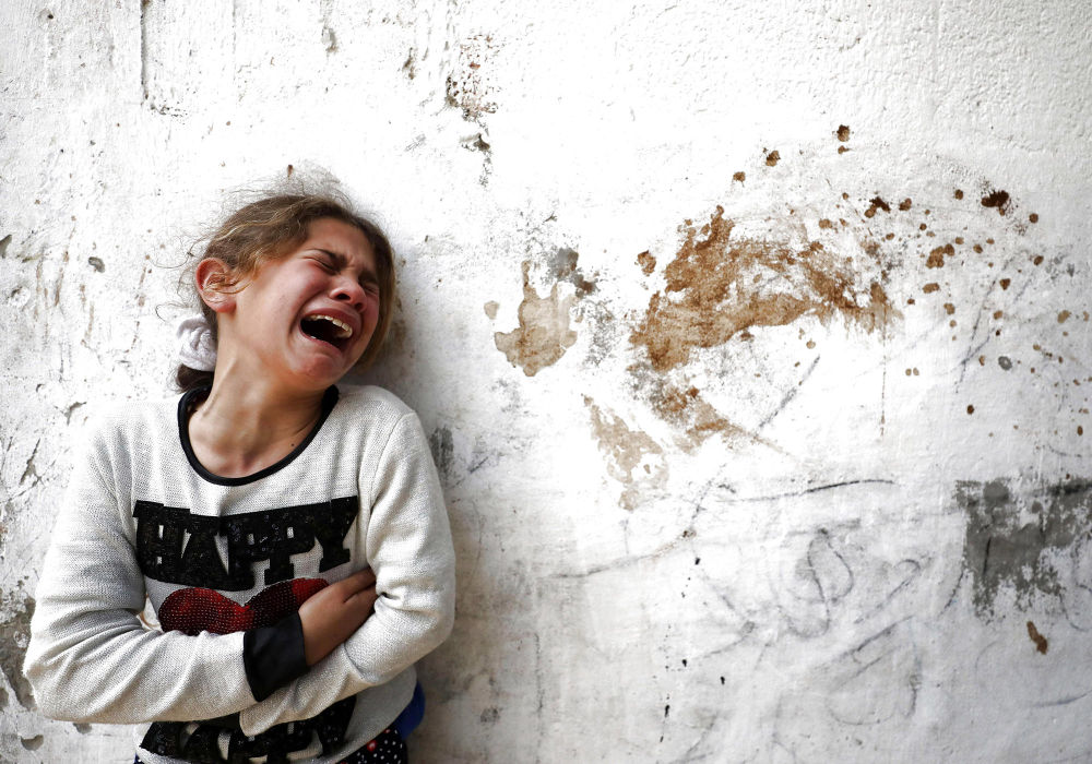 2019年2月23日,在加沙城,一名女孩在亲人优素福的葬礼上哭泣。15岁的巴勒斯坦男孩优素福22日在加沙地带东部与以色列交界地区举行的抗议活动中丧生。新华社发(亚西尔摄)