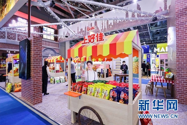 图为上好佳进博会展台(新华网 李函林 摄)