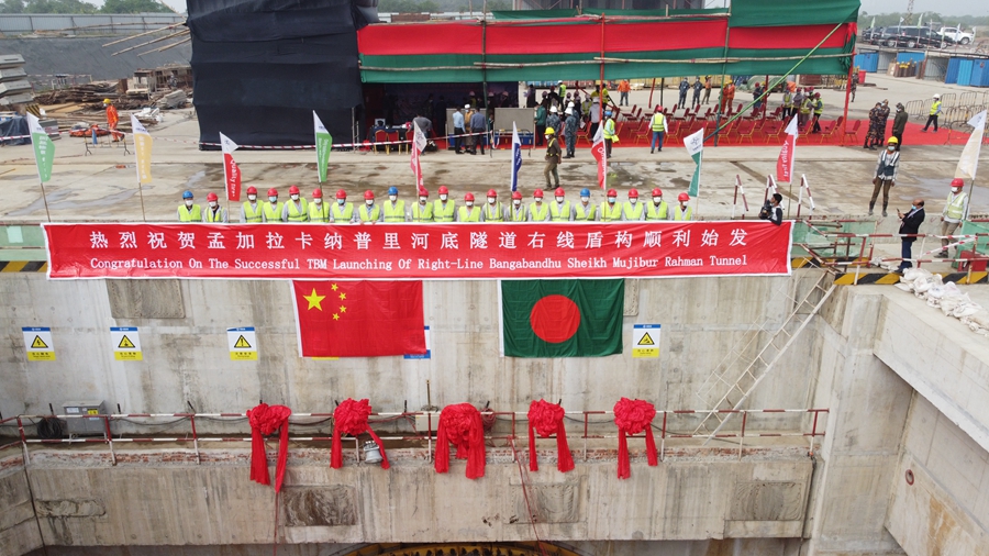 图为12月12日拍摄的孟加拉国卡纳普里河底隧道项目始发仪式。(图片由中国交建隧道项目部提供)