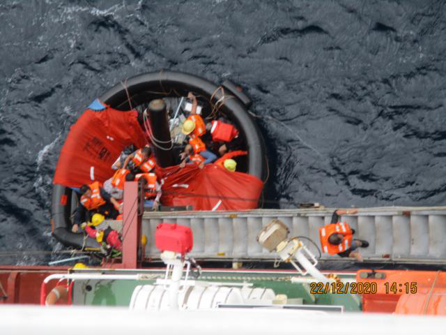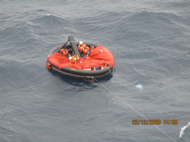 “JPO PISCES”轮现场救助照片。(图片由中国海上搜救中心提供)