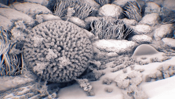 基于冷冻电镜断层成像和子断层平均重构技术解析的病毒结构,国际研究团队利用3D渲染技术制作出了精细的新冠病毒3D影像,让我们得以一窥病毒的内外全貌。不过,需要注意的是,视频中病毒对比鲜明的颜色并不代表其真实颜色,只是3D渲染的效果。