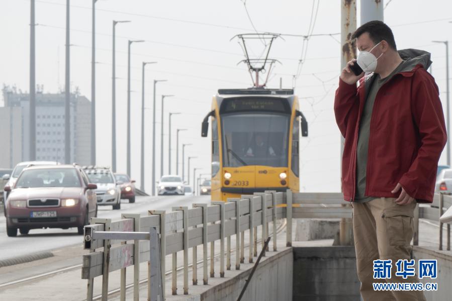 3月4日,在匈牙利首都布达佩斯,一名男子佩戴口罩打电话。新华社发(弗尔季·奥蒂洛 摄)