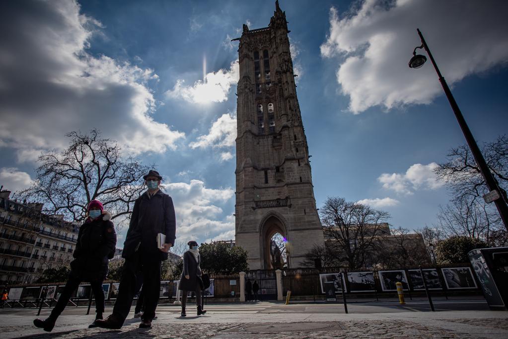 3月20日,在法国巴黎,人们戴着口罩出行。新华社发(奥雷利安·莫里萨尔摄)