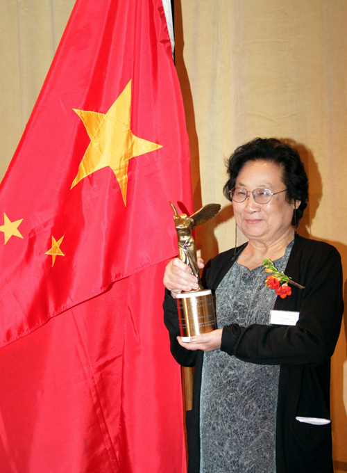 2011年9月23日,中国中医科学院终身研究员屠呦呦在美国纽约举行的拉斯克奖颁奖仪式上领奖。新华社记者 王成云 摄