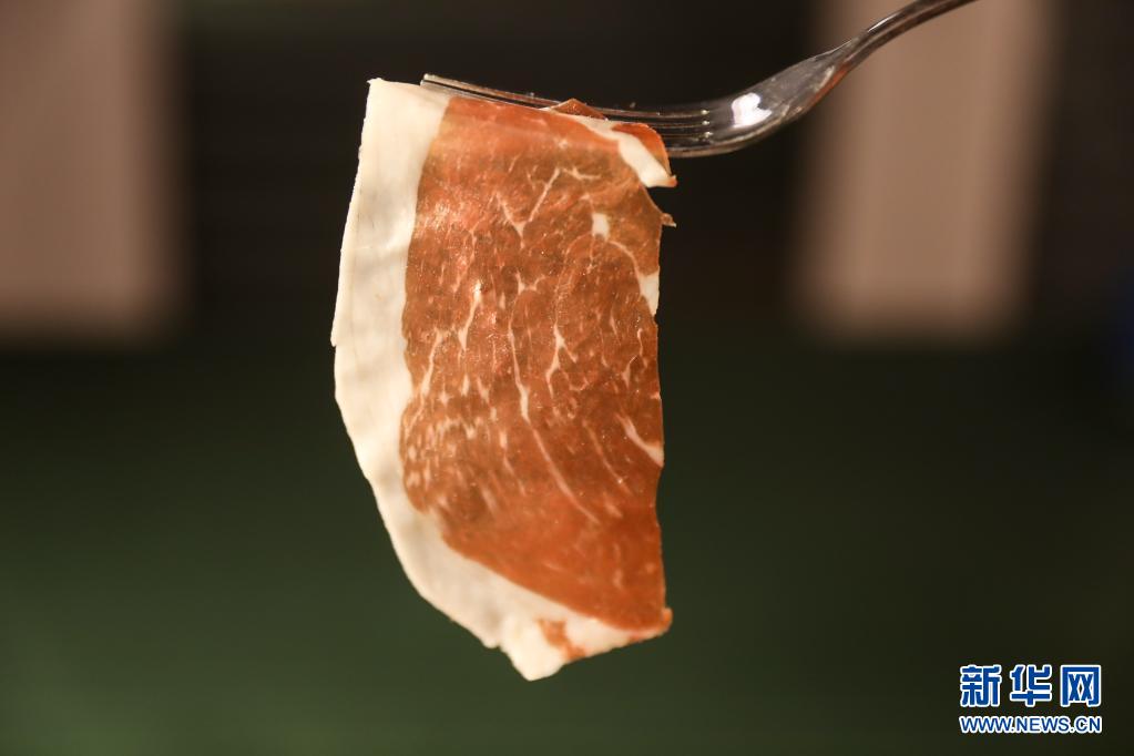 这是3月23日在意大利罗马拍摄的一片帕尔玛火腿。