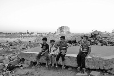 7月3日,伊拉克儿童坐在摩苏尔老城的废墟上。2016年10月至次年7月,在长达9个月的解放摩苏尔战役中,美国主导的国际联盟部队对摩苏尔老城实施无差别轰炸,大量平民家毁人亡。新华社发