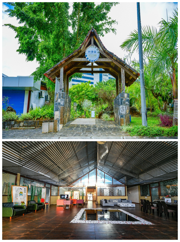 上下两图分别为御康堂健康中心外景和内景。(受访者供图)