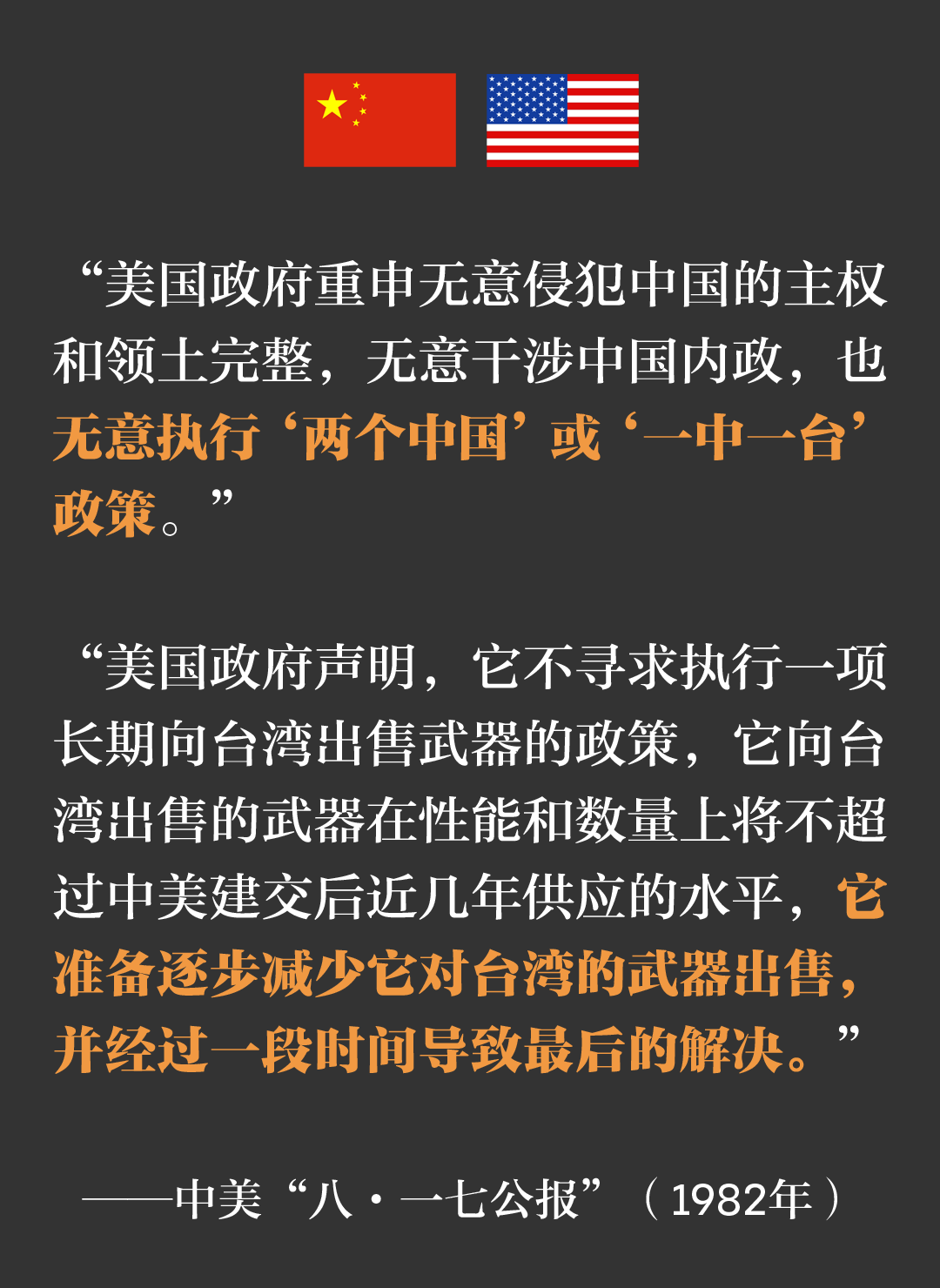 在“八・一七公报”中,美方承诺,准备逐步减少向台湾出售武器,并经过一段时间导致最后的解决。