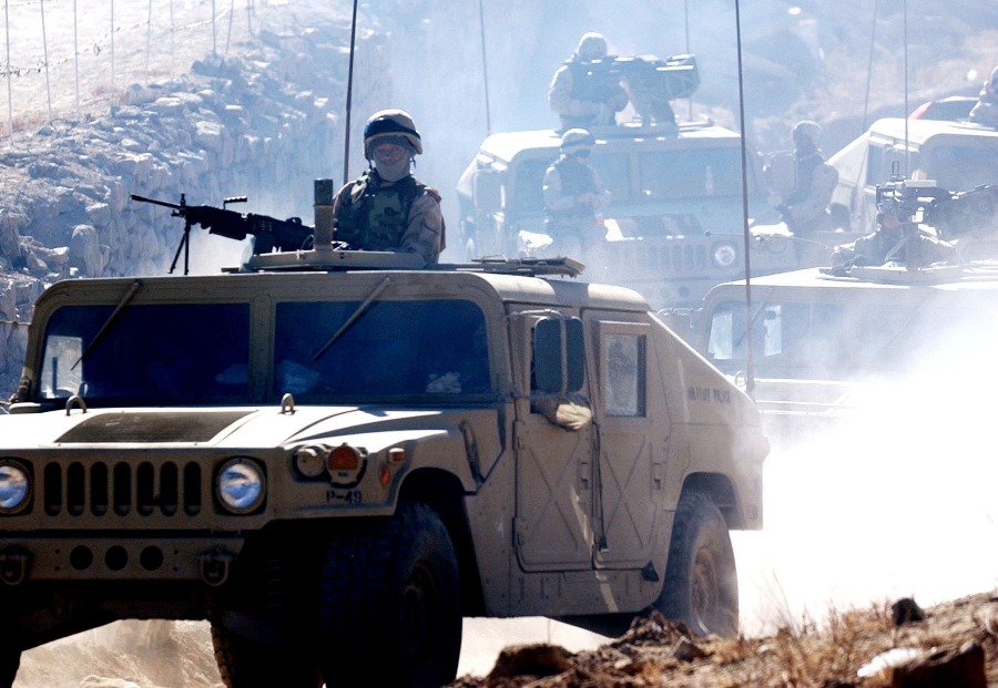 2003年12月16日,美军在阿富汗中部的瓦尔达克省巡逻。(新华社记者王雷摄)