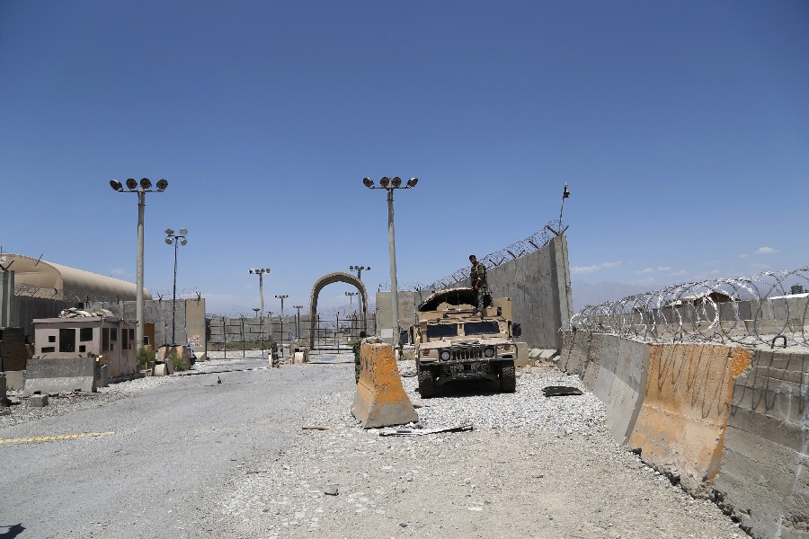 这是2021年7月2日在阿富汗帕尔万省拍摄的美国和北约军队撤离后的巴格拉姆空军基地。(新华社发,赛义德·莫明扎达摄)