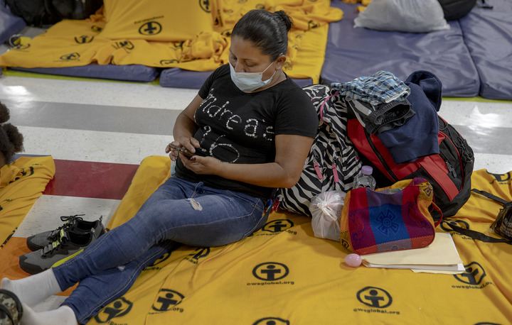 2022年5月2日,来自萨尔瓦多的玛丽亚·梅希亚在美国得克萨斯州麦卡伦的一个移民暂托中心。(尼克·瓦格纳摄)