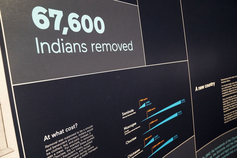 这是5月17日在美国华盛顿拍摄的印第安人国家博物馆里展示的《印第安人迁移法》相关内容。新华社记者刘杰摄