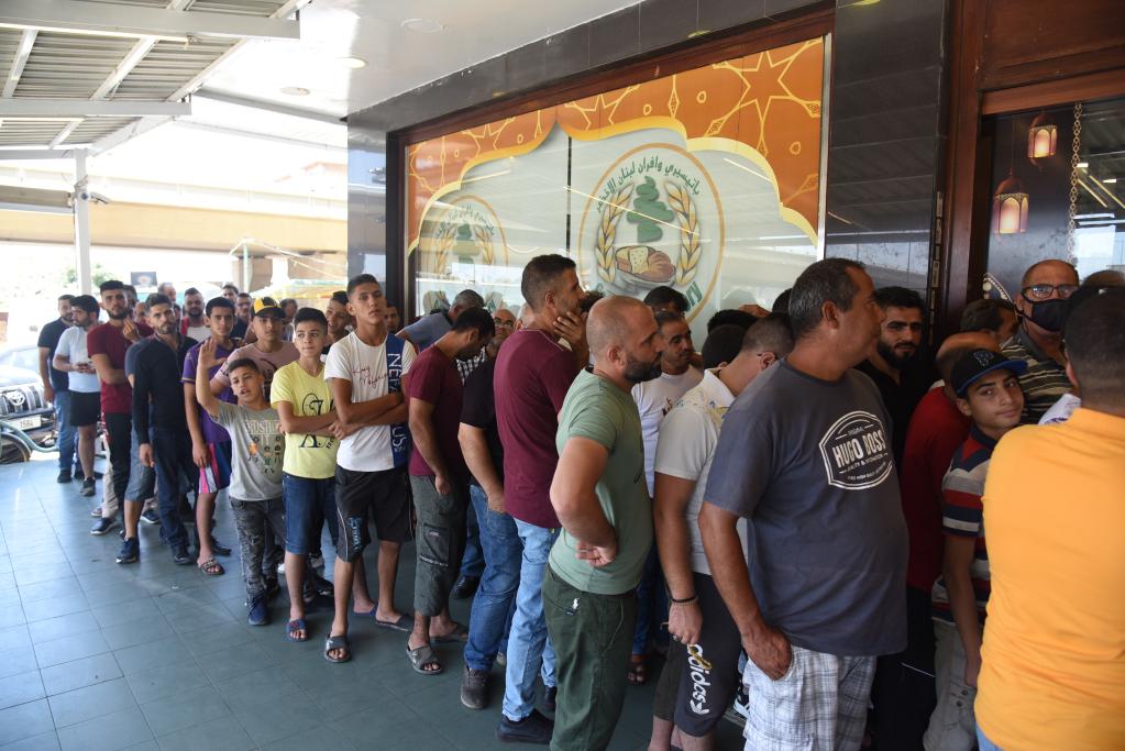 图为7月10日,人们在黎巴嫩的黎波里排队购买面包。新华社发(哈立德·哈巴什提摄)