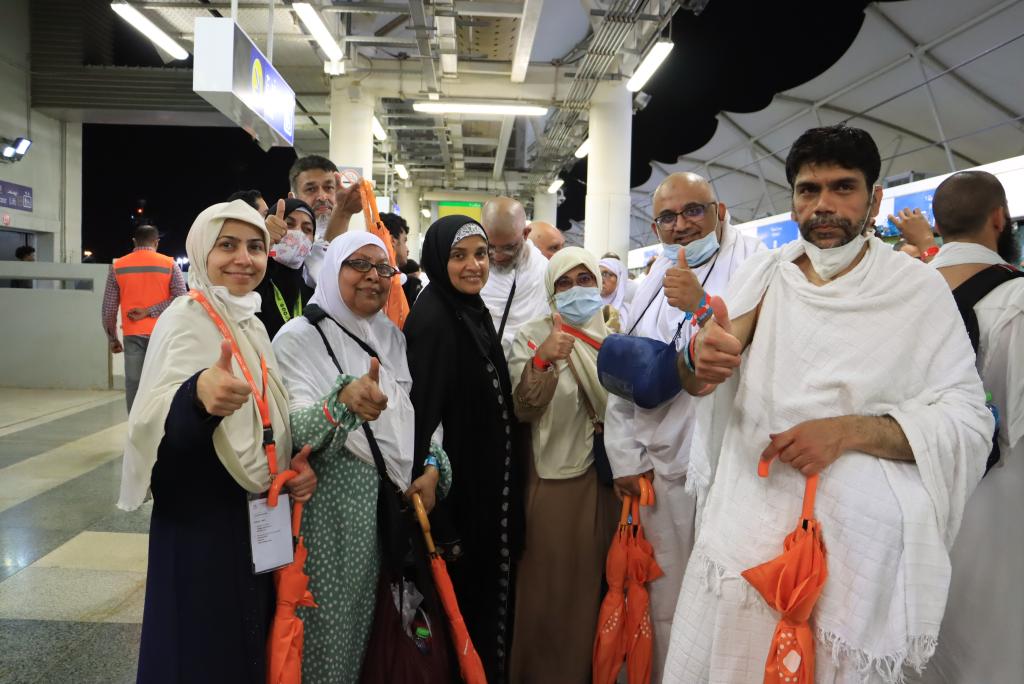 7月9日,在沙特阿拉伯麦加,乘坐中企修建和运营的轻轨列车的朝觐者称赞列车快捷舒适。新华社发(中国铁建供图/韩晓林 摄)