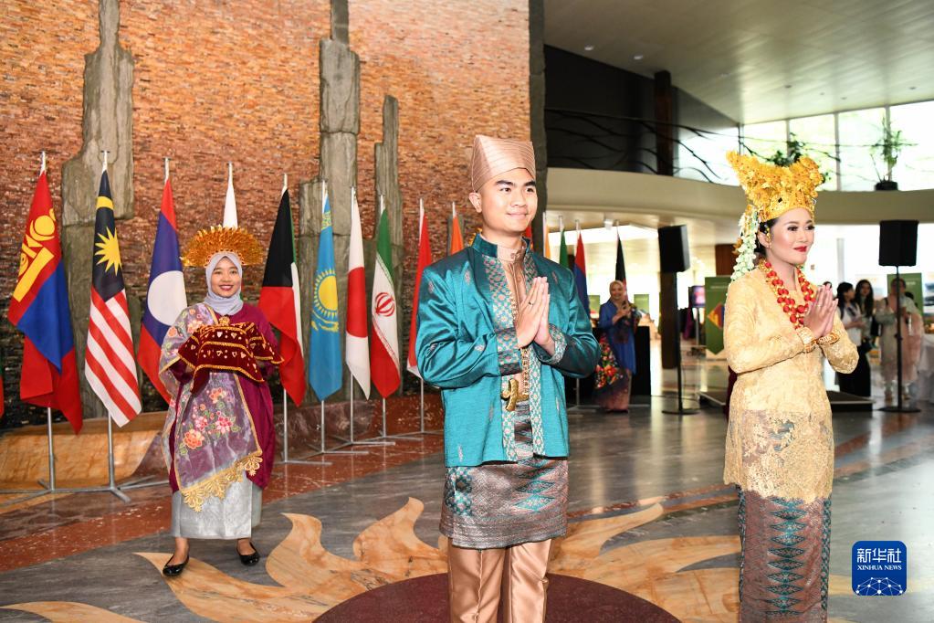 6月7日,在瑞士日内瓦,来自印尼的代表向来宾们展示本国特色的婚俗以及相关的文化传统。新华社记者 连漪 摄