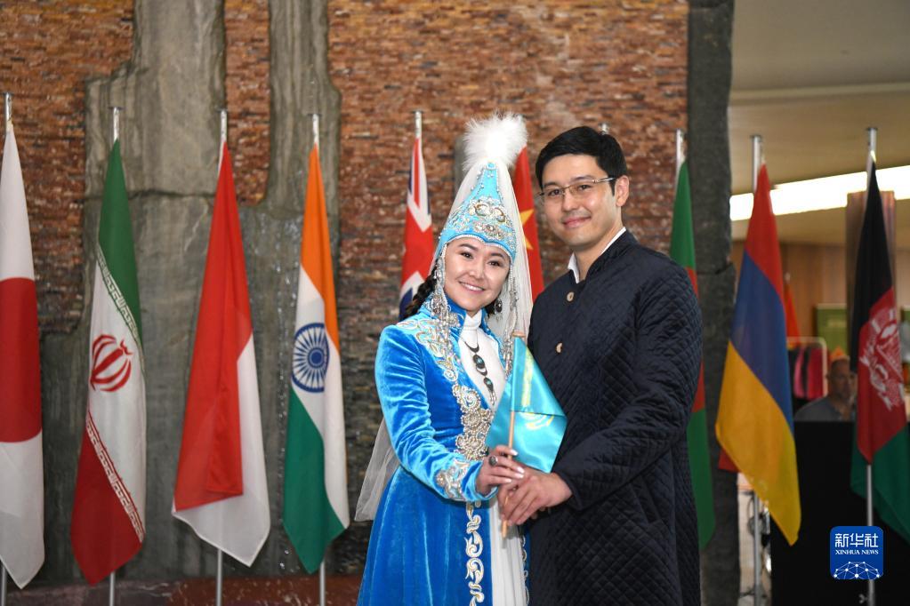 6月7日,在瑞士日内瓦,来自哈萨克斯坦的代表向来宾们展示本国特色的婚俗以及相关的文化传统。新华社记者 连漪 摄