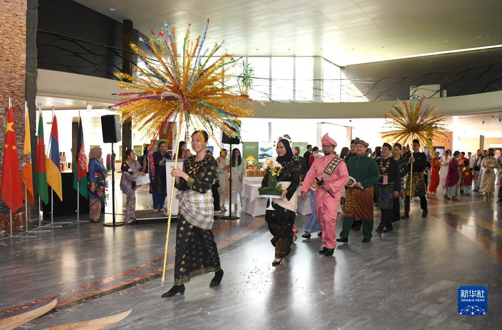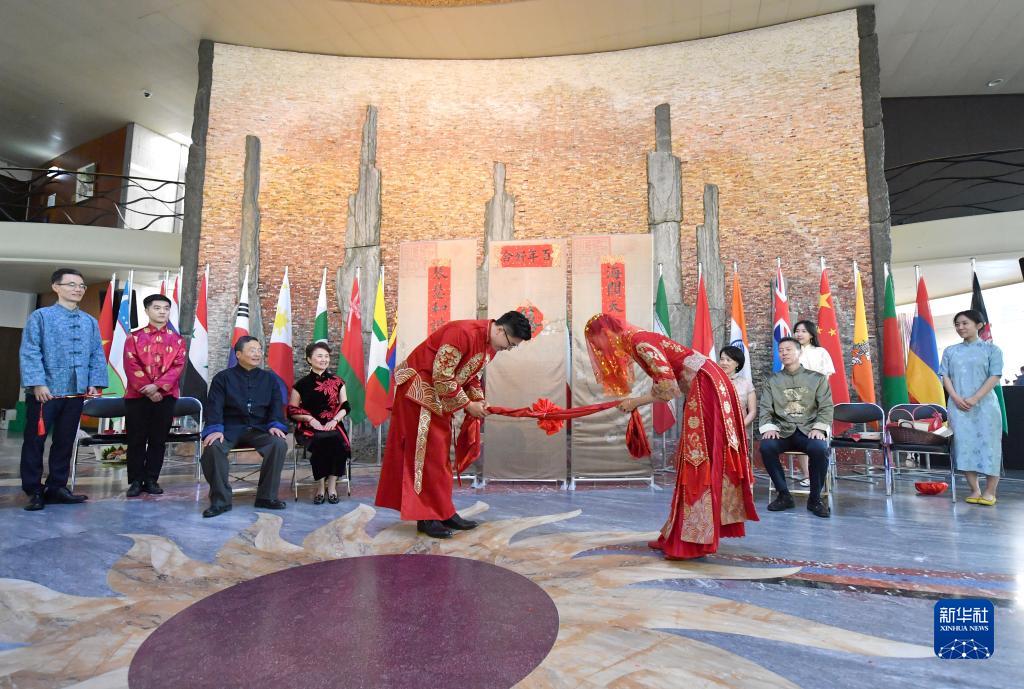 当天的世界知识产权组织总部大厅张灯结彩,亚美尼亚、孟加拉国、中国、斐济、印度、印度尼西亚、马来西亚、菲律宾、斯里兰卡、巴基斯坦、越南等亚洲国家使团的代表身着本国传统服装,携带婚礼常用的器物,向来宾们展示本国特色的婚俗以及相关的文化传统。各国代表团还展出了本国特色产品和食品,让来宾在享受文化盛宴的同时品尝多国美食。