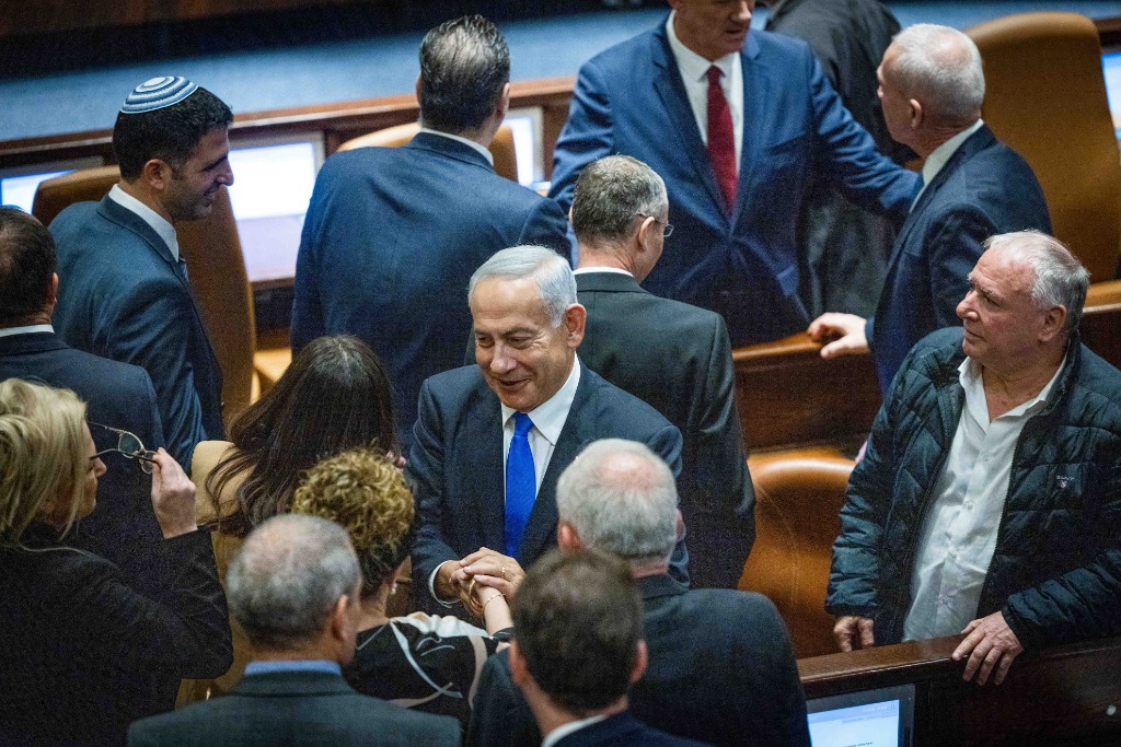 2022年12月29日,内塔尼亚胡(中)在耶路撒冷出席以色列议会会议。新华社/基尼图片社