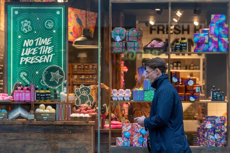 2021年12月16日,一名男子走过英国伦敦街头一家商店。新华社发(雷伊·唐摄)