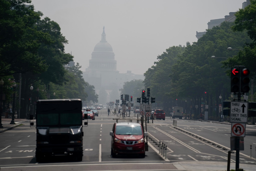 6月29日,在美国首都华盛顿,国会大厦笼罩在烟雾中。新华社记者刘杰摄