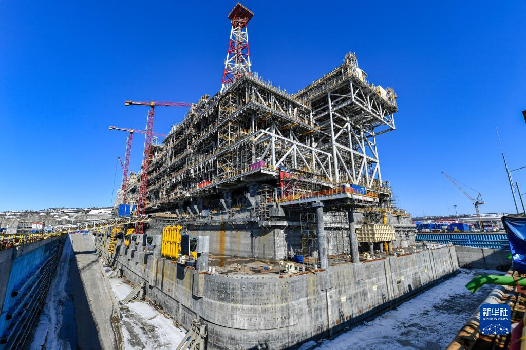 这是4月6日在俄罗斯亚马尔-涅涅茨自治区拍摄的北极液化天然气2项目设施。新华社记者 曹阳 摄