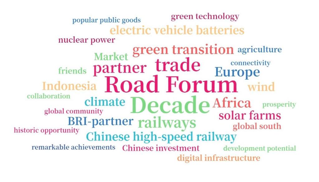 在这两个“词云”当中,国际合作、发展成就、铁路和港口等项目、共建国家等都是高频词;在论坛闭幕之后,气候、绿色转型、绿色技术等相关内容更成为热点议题。共建“一带一路”成就斐然,西方媒体想视而不见也越来越难。