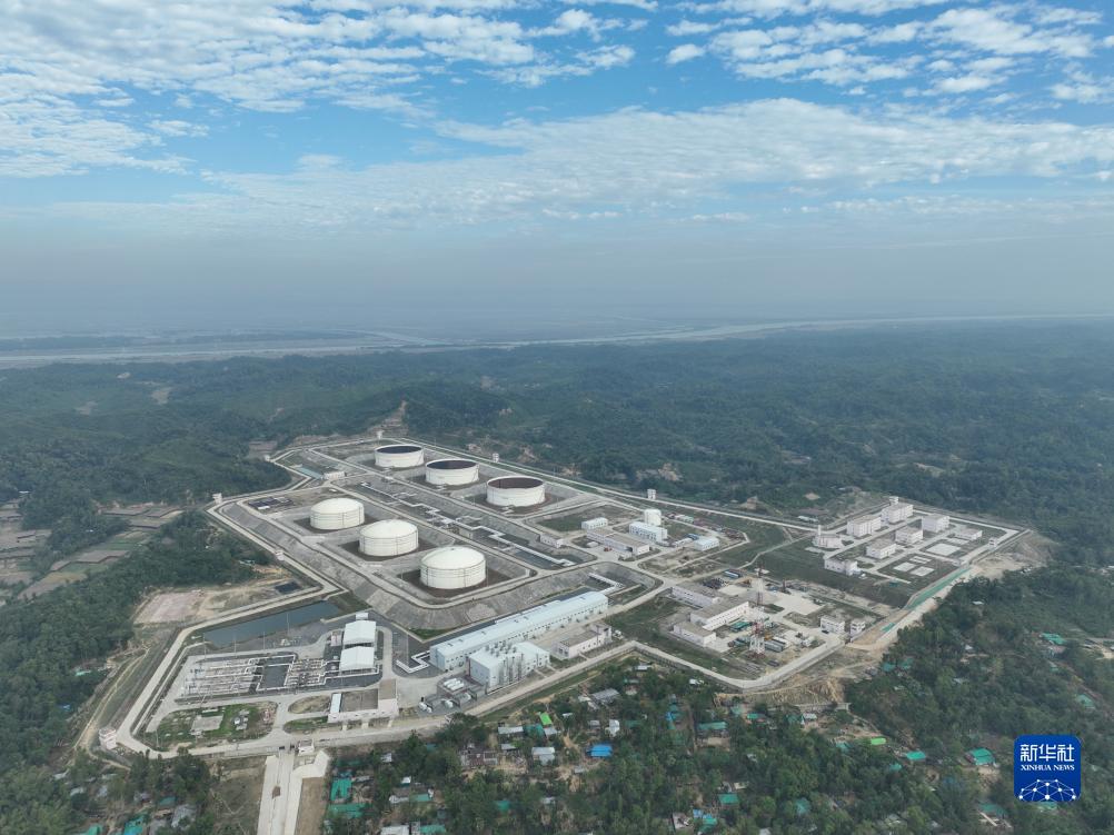 这是11月30日在孟加拉国莫海什卡利拍摄的单点系泊及双线管道系统工程项目场站(无人机照片)。新华社发(孟加拉国单点系泊及双线管道系统工程项目部供图)
