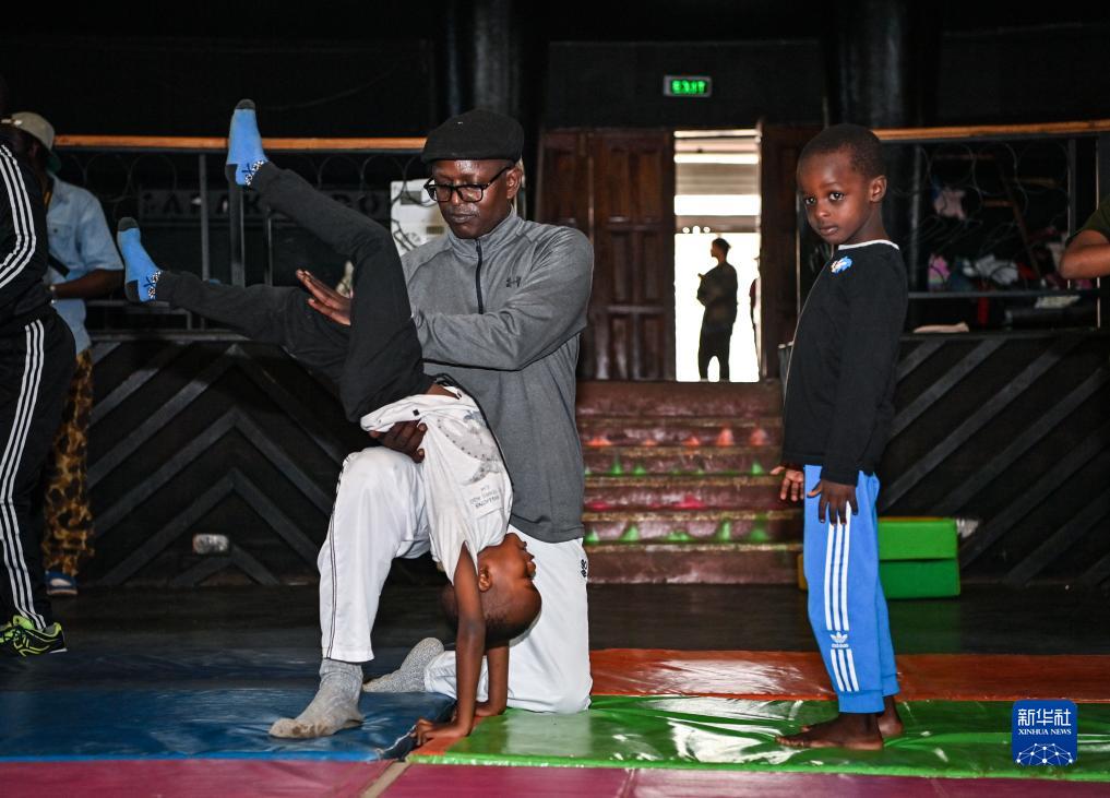 11月18日,在位于肯尼亚首都内罗毕的内罗毕杂技艺术剧院内,马蒂亚斯指导儿童学生练习杂技。
