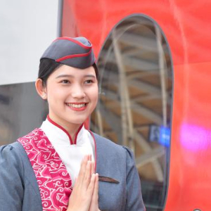12月12日,乘务人员在印度尼西亚雅加达的哈利姆车站站台欢迎乘坐雅万高铁的乘客。新华社记者徐钦摄