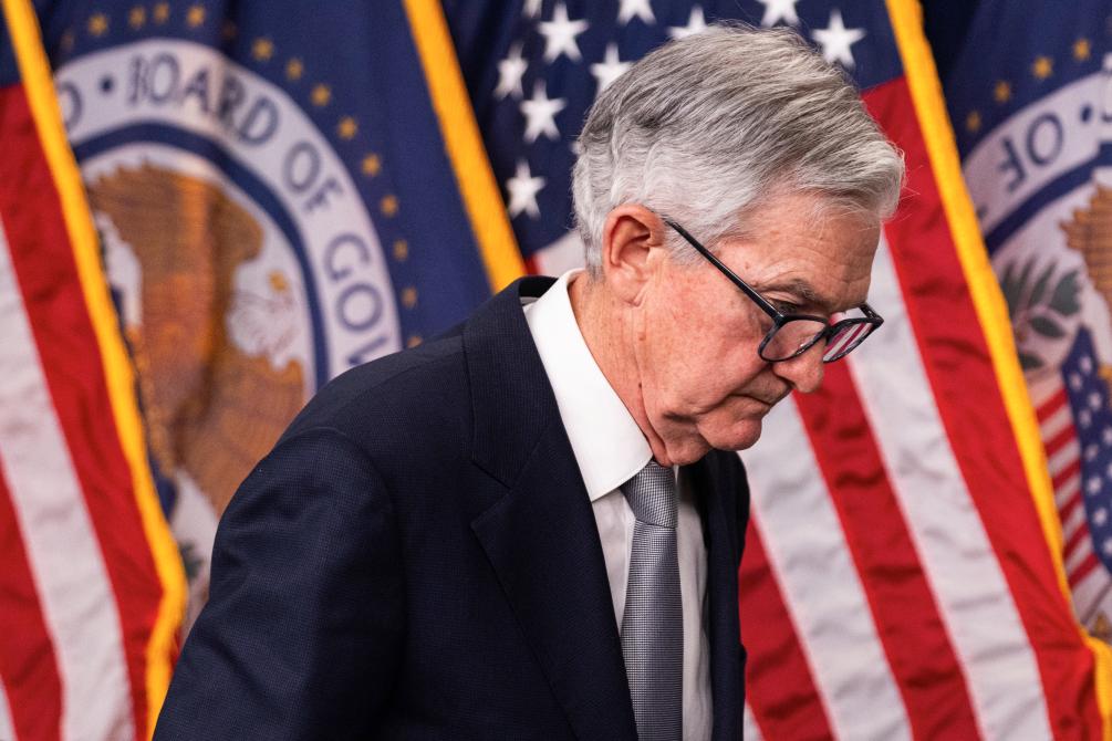 11月1日,美国联邦储备委员会主席鲍威尔在华盛顿出席记者会。新华社发(亚伦摄)