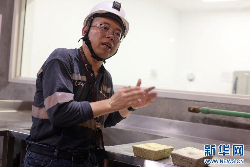 12月26日,武里蒂卡金矿负责人李雷忠展示、介绍金矿生产的两种成品。记者 周盛平 摄pagebreak