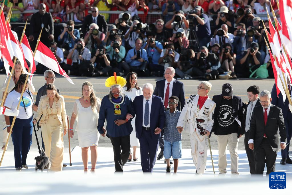 2023年1月1日,巴西新一任总统路易斯·伊纳西奥·卢拉·达席尔瓦在首都巴西利亚正式宣誓就职。这是卢拉抵达总统府“高原宫”。