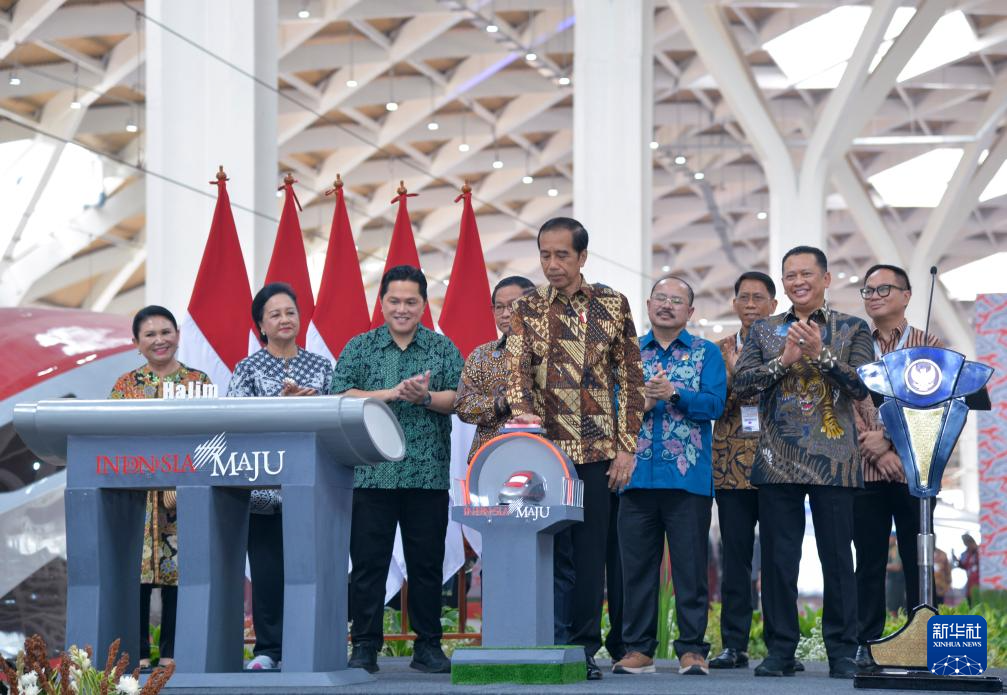 2023年10月2日,在印度尼西亚雅加达哈利姆高铁站,印尼总统佐科(前)在雅万高铁启用仪式上按下启用键,宣布雅万高铁正式启用。