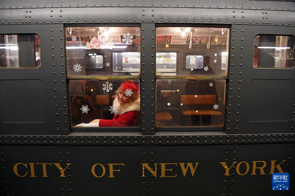 2023年12月2日,人们在美国纽约乘坐“怀旧地铁”专列。