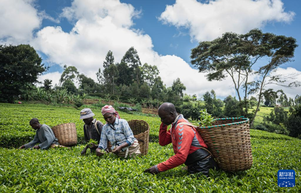 2023年5月4日,工人在肯尼亚首都内罗毕附近的茶园采茶。