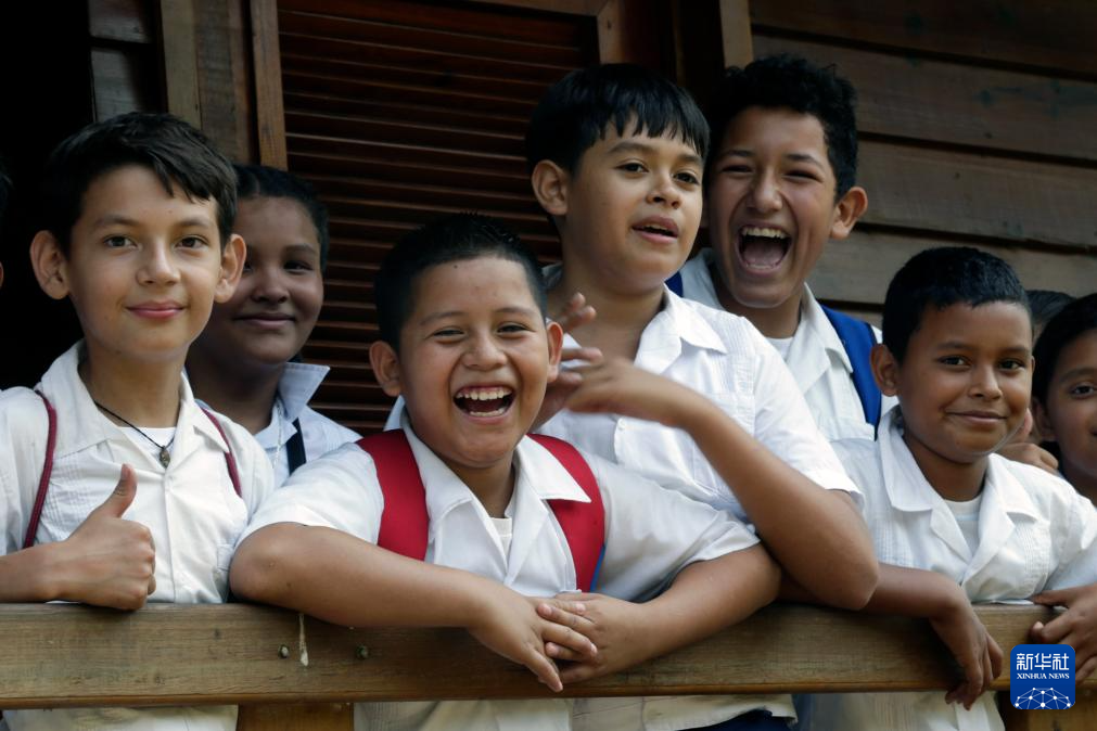 2023年5月30日,在洪都拉斯圣芭芭拉省圣克鲁斯市,学生们面对镜头微笑。