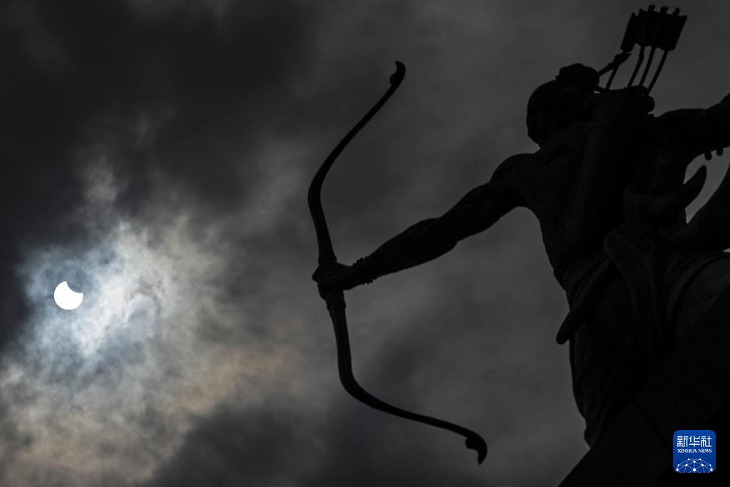 2023年4月20日,日食出现在印度尼西亚雅加达上空。