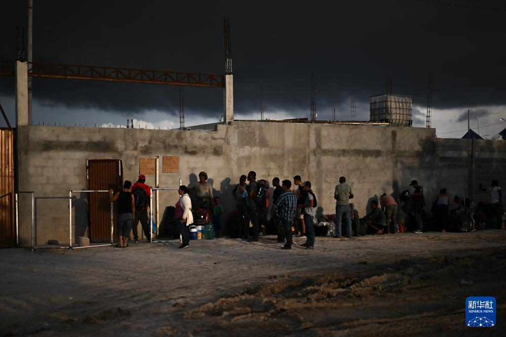 2023年5月16日,在墨西哥的墨美边境城市雷诺萨,移民等待进入收容所。