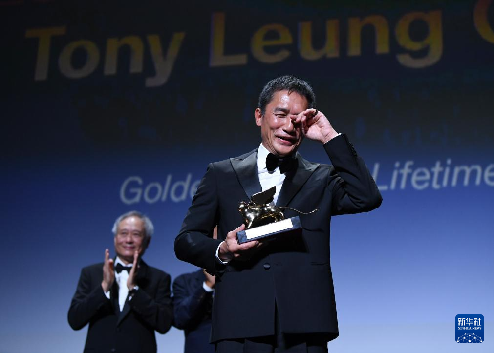 2023年9月2日,在第80届意大利威尼斯电影节上,中国香港演员梁朝伟(右)获颁威尼斯终身成就金狮奖。