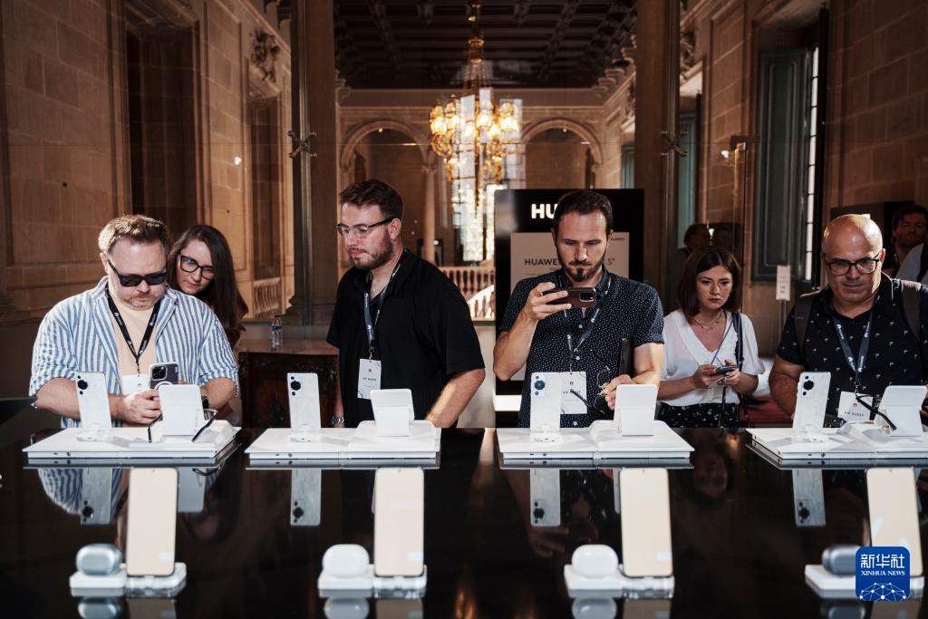 2023年9月14日,人们在西班牙巴塞罗那参加华为公司的新品发布会。