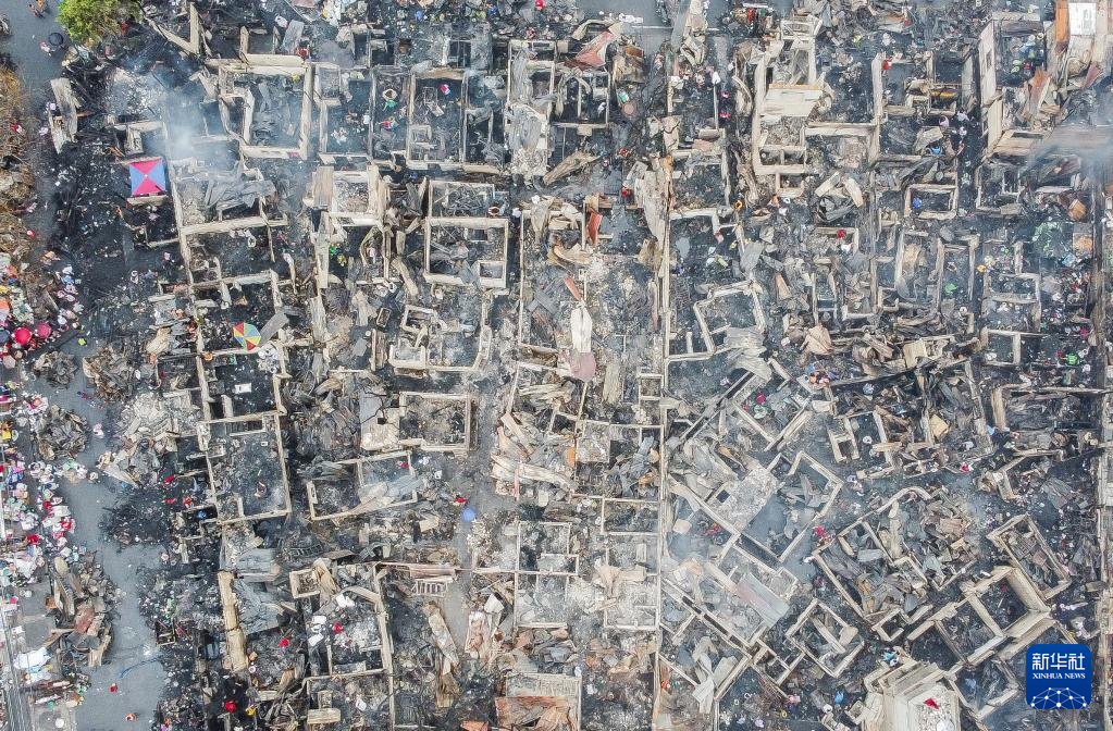 这是2023年2月19日在菲律宾奎松拍摄的被烧毁的房屋(无人机照片)。