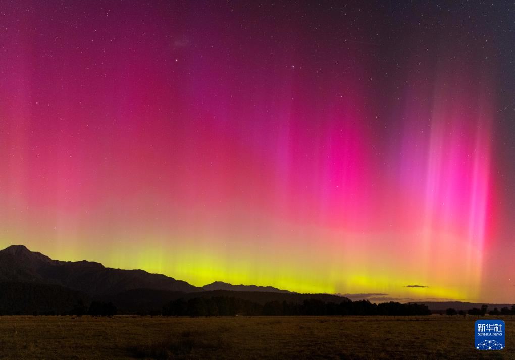 这是2023年2月27日晚在新西兰南岛西海岸福克斯冰川拍摄的南极光。
