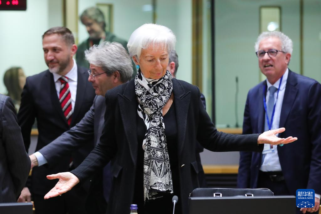 2023年5月15日,在比利时布鲁塞尔,欧洲中央银行行长拉加德(前)出席欧元集团会议。