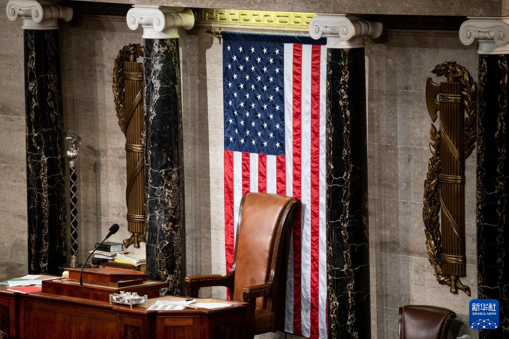 这是2023年1月5日在美国华盛顿国会拍摄的空置的众议院议长座椅。