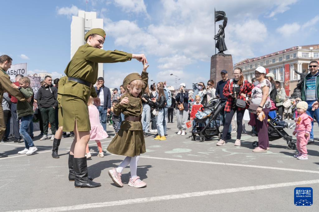 2023年5月9日,在俄罗斯符拉迪沃斯托克,人们身着二战时期苏军样式军装参加卫国战争胜利78周年纪念活动。