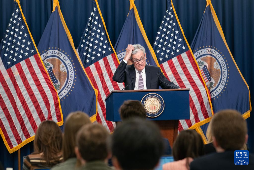 2023年5月3日,美国联邦储备委员会主席鲍威尔在华盛顿出席新闻发布会。