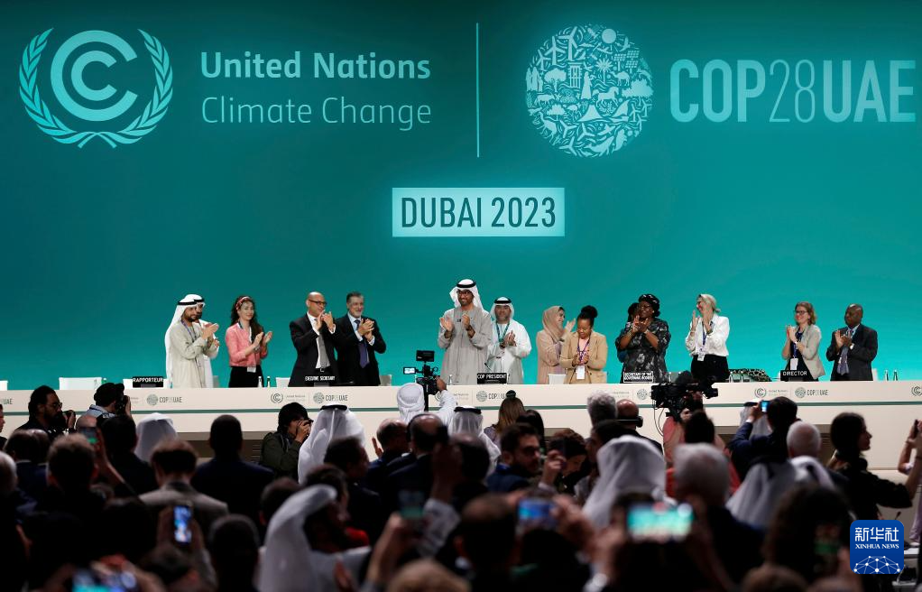 2023年12月13日,在阿联酋迪拜举行的《联合国气候变化框架公约》第二十八次缔约方大会在“加时”一天后闭幕。这是大会主席苏尔坦·贾比尔宣布达成“阿联酋共识”后,参会人员起立鼓掌。