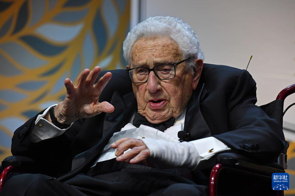 2023年11月29日,美国前国务卿亨利·基辛格去世,享年100岁。这是10月24日,基辛格在纽约举行的美中关系全国委员会年度颁奖晚宴上发表讲话。